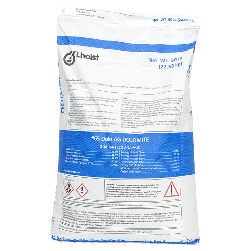 Use dolomite for liming low pH soils which are low in calcium and magnesium. Dolomitic rock is sedimentary rock originally from Northern Italy high in calcium magnesium carbonate.